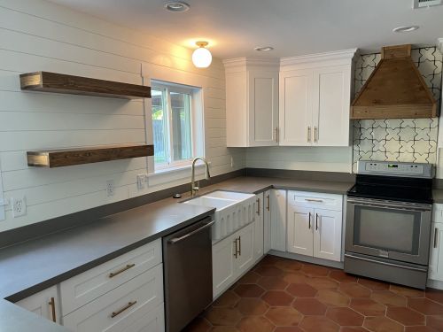 irregular walls, integrate appliances, and choose materials that hold up to Houston humidity so you won’t be replacing them